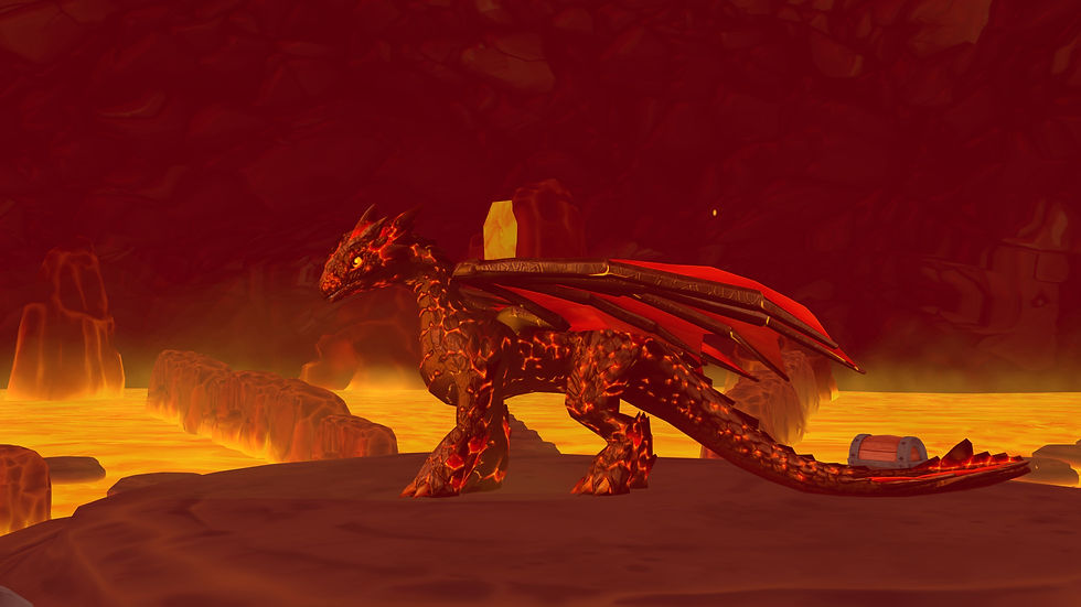 The event is presented as a progression across floating lava stones toward a central Treasure Island, with real-time updates showing how many contenders remain after each round. A failed level ends a player’s run immediately, with the event framing the elimination as the dragon removing the fallen challenger. Players who survive all seven levels reach the treasure together and activate a shared lever, triggering a finale where a golden cage drops onto the dragon and the reward is distributed equally among the remaining players.